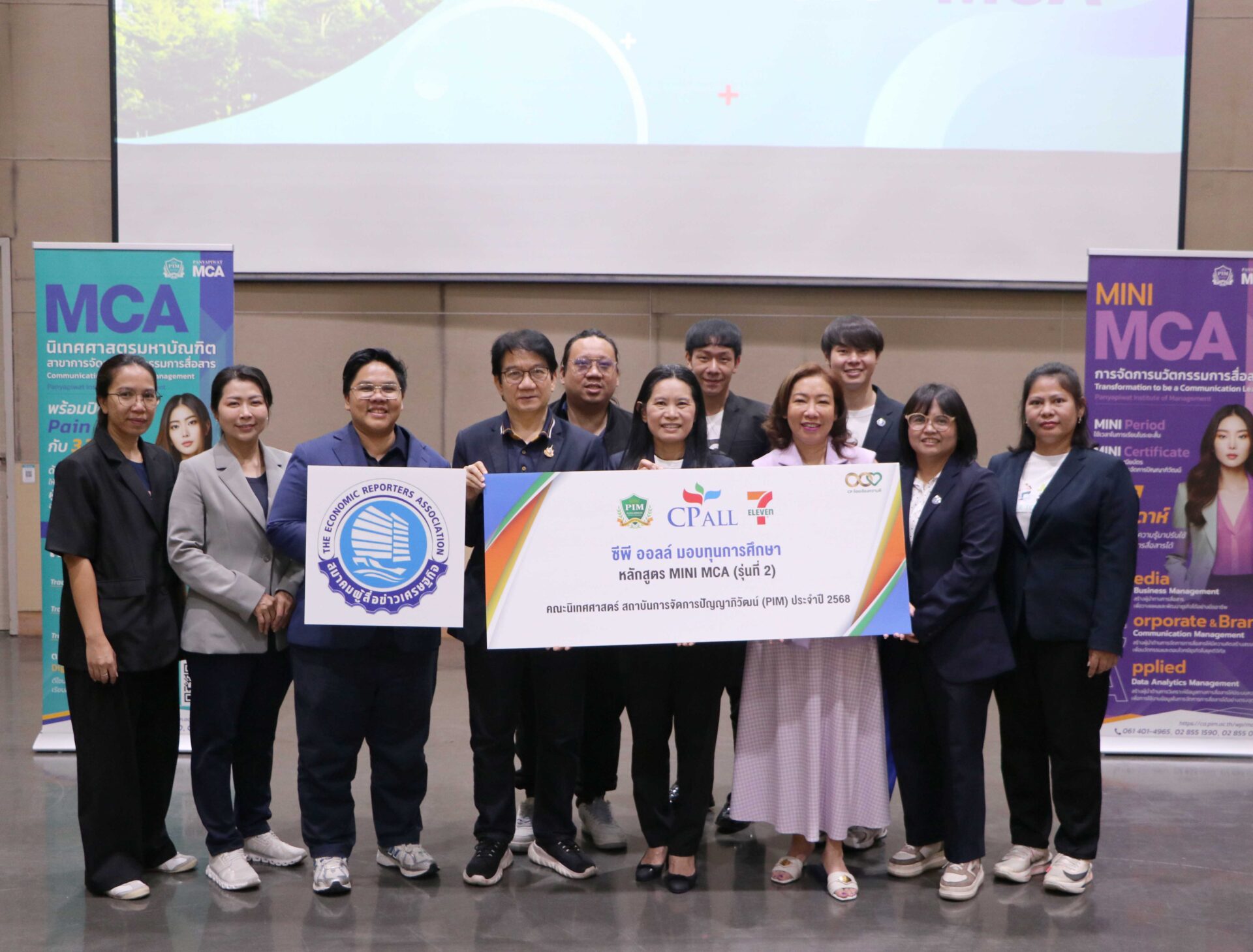 วันที่ 17 พฤษภาคม 2568 คุณธานี ลิมปนารมณ์ ผู้ช่วยกรรมการผู้จัดการ สำนักบริหารการสื่อสารองค์กร บริษัท ซีพี ออลล์ จำกัด (มหาชน) พร้อมด้วย รศ.ดร.จินตวีร์ เกษมศุข คณบดี คณะนิเทศศาสตร์ สถาบันการจัดการปัญญาภิวัฒน์ (PIM) ได้มอบทุนการศึกษาหลักสูตร MINI MCA การจัดการนวัตกรรมการสื่อสาร (รุ่นที่ 2) จาก สถาบันการจัดการปัญญาภิวัฒน์ (PIM) ให้กับสมาชิกสมาคมผู้สื่อข่าวเศรษฐกิจ จำนวน 5 ทุน โดยมีคุณดวงพร อุดมทิพย์ นายกสมาคมผู้สื่อข่าวเศรษฐกิจ และคณะกรรมการ พร้อมกับสมาชิกสมาคมฯ ที่ได้รับทุนการศึกษา เข้าร่วมงานรับมอบทุนการศึกษาในครั้งนี้