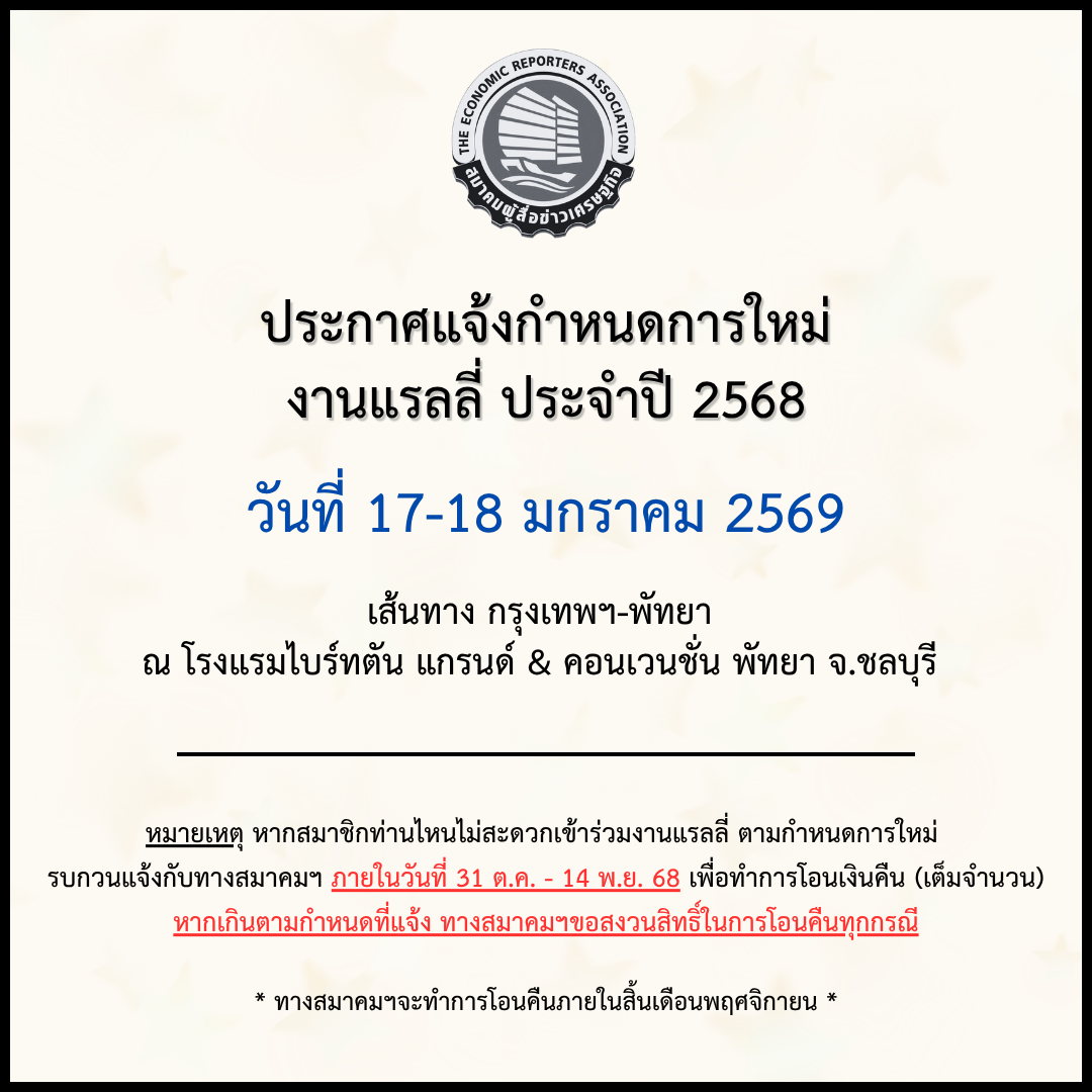 ประกาศแจ้งกำหนดการใหม่งานแรลลี่ ประจำปี 2568