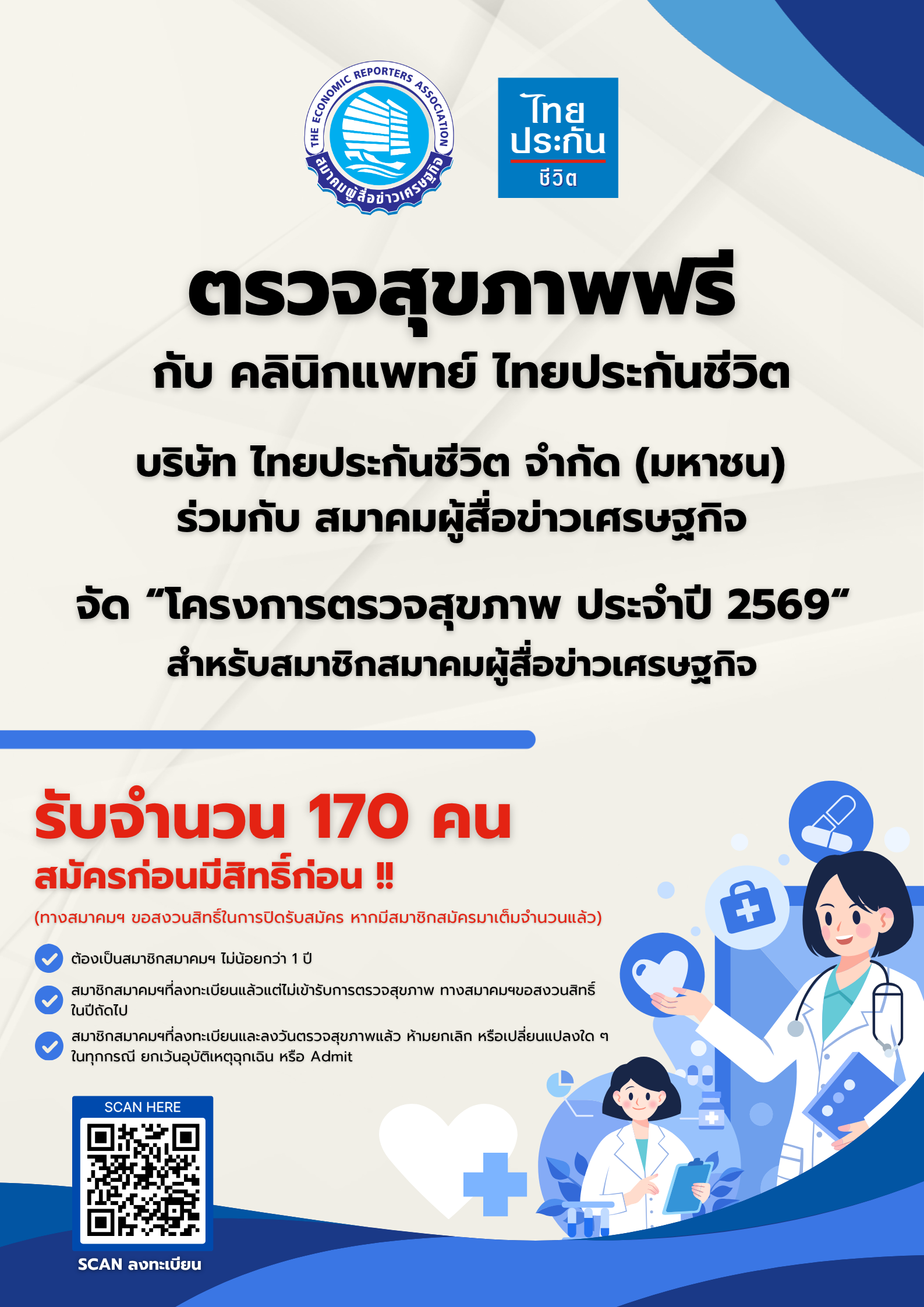 ไทยประกันชีวิต ร่วมกับ สมาคมผู้สื่อข่าวเศรษฐกิจ จัด “โครงการตรวจสุขภาพประจำปี 2569” สำหรับสมาชิกสมาคมผู้สื่อข่าวเศรษฐกิจ