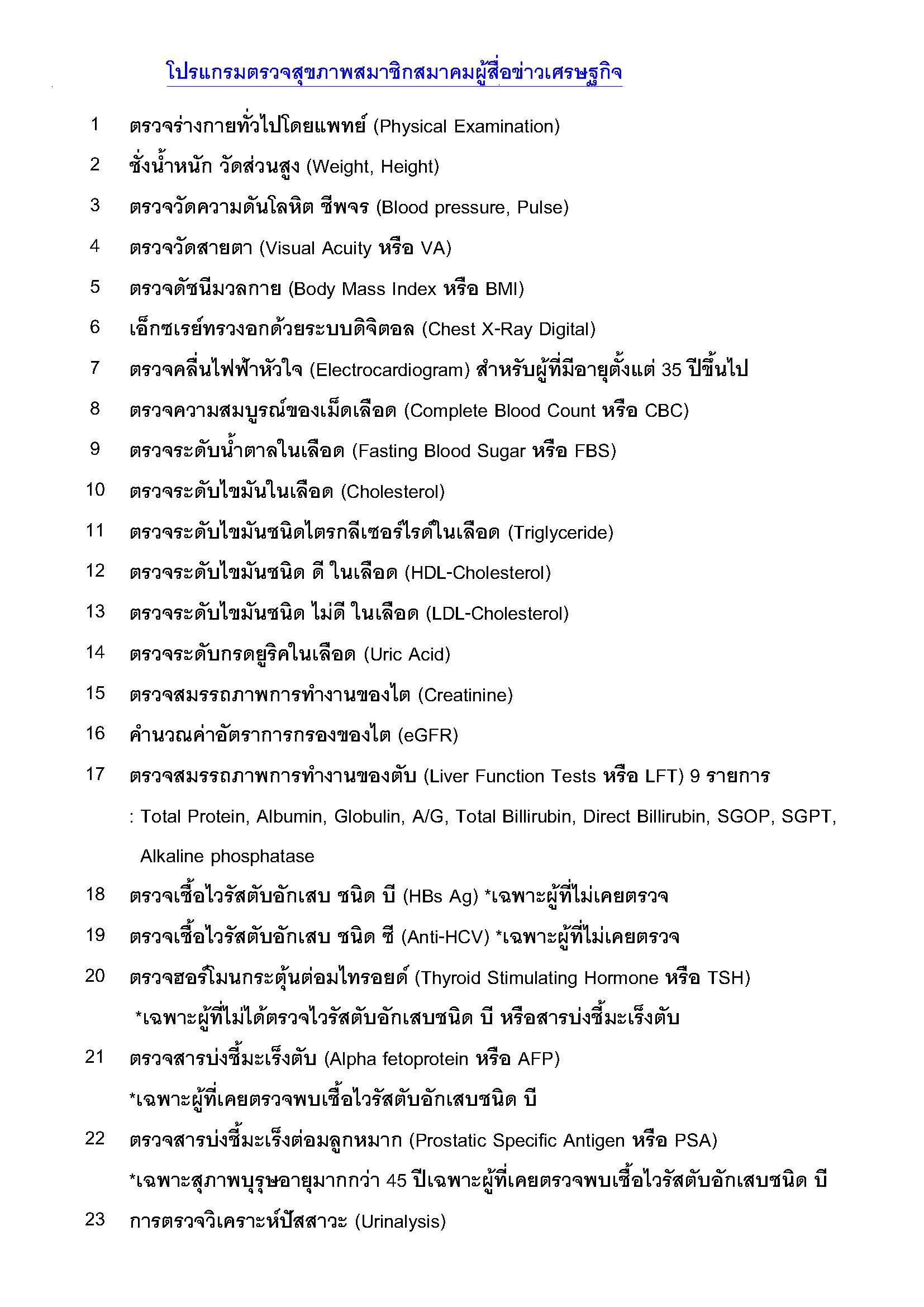 - ขอความร่วมมือในการไม่เปลี่ยนแปลง รายชื่อ-วัน-เวลา ในการตรวจสุขภาพ ยกเว้นกรณีมีเหตุฉุกเฉิน