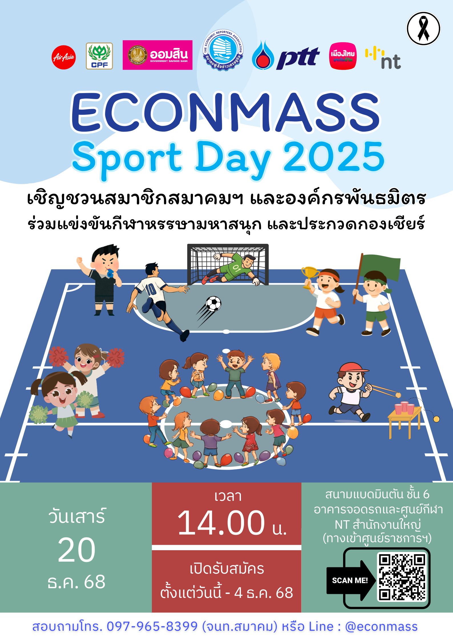 📢เชิญชวนสมาชิกสมาคมผู้สื่อข่าวเศรษฐกิจ, ผู้บริหาร หรือฝ่ายสื่อสารองค์กรพันธมิตร ร่วมแข่งขันกีฬาหรรษามหาสนุก และประกวดกองเชียร์ ในกิจกรรม Econmass Sport Day 2025