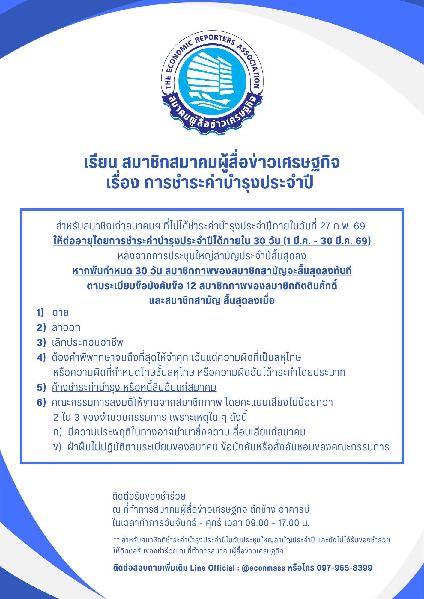 Home ข่าวสารสมาคม 📍สมาคมผู้สื่อข่าวเศรษฐกิจขอแจ้งเรื่องการชำระค่าบำรุงประจำปี 2569 📍สมาคมผู้สื่อข่าวเศรษฐกิจขอแจ้งเรื่องการชำระค่าบำรุงประจำปี 2569 by admin 05/03/2026 13 views